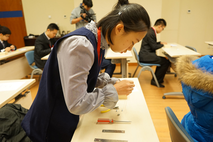 让评委们感到惊喜的是,参加遴选的选手中,“科技女生”还真不少。来自辽宁省沈阳市第五中学的滕菲,仅用不到5分钟时间就完成了动手制作。
